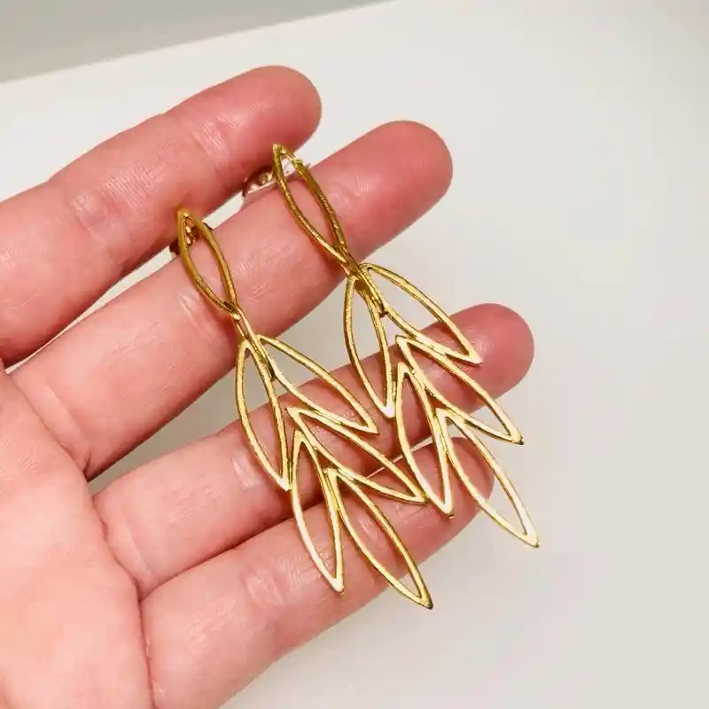 Aros dorados con baño de oro de 24k. Diseño Caroco: "Racimo de pétalos" de la colección "Crisantemos".