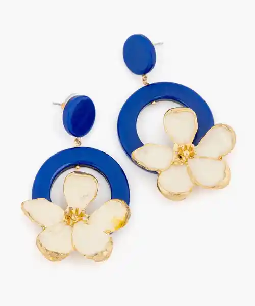 Con un Par. Aros Grandes Con Resina y Flor Blanca.
