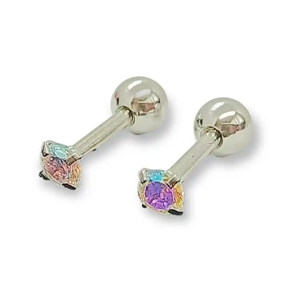 Aros Seguridad Punto Luz Figura Circulo Hipoalergénicos Zirconio Tornasol 3mm