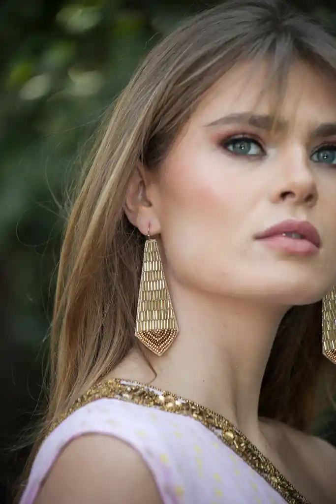 Aros bordados con pedrería.