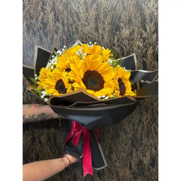 HERMOSO ARREGLO DE GIRASOL CON GYPSOPHILA