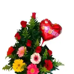 Arreglo de 6 Rosas, 6 Gerberas y Globo