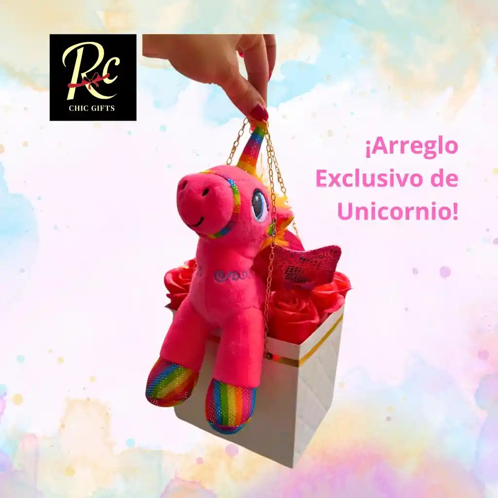 ¡Sumérgete en un mundo de fantasía y amor con nuestro exclusivo Arreglo de Unicornio Rosado y Rosas Eternas Rojas, disponible solo en Regalos Chic! Este encantador arreglo combina la ternura de un adorable unicornio de peluche en vibrante color rosa con la pasión de rosas rojas preservadas, todo presentado en una elegante caja decorada con un diseño de rombos. Es el regalo perfecto para fans de los unicornios, para celebrar cumpleaños, aniversarios, San Valentín o cualquier ocasión especial que merezca un toque mágico e inolvidable. ¿Buscas un regalo original, tierno y que perdure en el tiempo para alguien especial? Nuestro Arreglo de Unicornio Rosado y Rosas Eternas Rojas de Regalos Chic es la elección ideal. Las rosas eternas mantienen su belleza y frescura por años, simbolizando un amor o amistad duraderos, mientras que el unicornio añade ese toque de encanto, fantasía y alegría. Ideal para niñas, adolescentes y adultos que aman los unicornios y los detalles únicos y con significado. ¡Regala magia y un recuerdo para siempre con este arreglo exclusivo de Regalos Chic! Características Principales: Peluche de Unicornio: Un adorable unicornio rosado con crin y cola de colores vibrantes, y cuerno y alas brillantes. Rosas Eternas Rojas: Flores naturales preservadas que mantienen su color y forma por años, simbolizando la pasión y el amor. Elegante Presentación: Caja decorativa con diseño de rombos y una cadena dorada para colgar el unicornio. Regalo Duradero: Un recuerdo que perdurará mucho más allá de la ocasión. Diseño Único: Arreglo exclusivo de Regalos Chic, diseñado para sorprender. Beneficios Clave: Regalo memorable y emotivo: Combina la ternura del unicornio con la belleza eterna de las rosas. Durabilidad garantizada: Las rosas preservadas no necesitan agua ni cuidados especiales. Presentación impecable: Listo para regalar y causar una gran impresión. Versátil para diversas ocasiones: Ideal para cumpleaños, aniversarios, San Valentín, declaraciones, etc. Único de Regalos Chic: Un arreglo que no encontrarás en ningún otro lugar. Perfecto para fanáticos de la fantasía y los detalles originales. ¡No esperes más para regalar un momento mágico y un recuerdo eterno con nuestro Arreglo Exclusivo Unicornio Rosado y Rosas Eternas Rojas, disponible solo en Regalos Chic! ¡Un detalle que llenará de magia y color cualquier corazón!