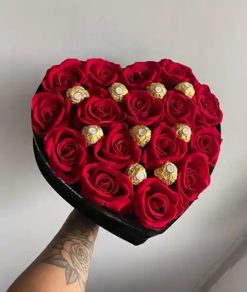 Contiene 32 Unidades. Box Corazón Rosas 24 Und + Bombones 8 Und.