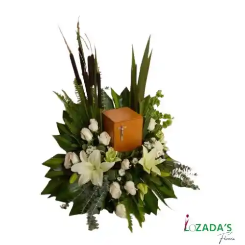 Un tributo floral de lujo, perfecto para rendir homenaje con dignidad y elegancia. Este arreglo floral exclusivo, compuesto por una delicada selección de rosas importadas y liliums, ha sido diseñado específicamente para acompañar ánforas o urnas con cenizas en momentos de duelo. Su armoniosa combinación de flores simboliza el respeto profundo, la tranquilidad y el amor eterno, ofreciendo un detalle sobrio y lleno de significado. Las rosas, con su elegancia atemporal, representan el amor y el recuerdo perdurable, mientras que los liliums, con su pureza y fragancia suave, transmiten serenidad y paz. Este arreglo, pensado para funerales, misas o el último día, se presenta con una belleza que aporta consuelo y un toque de lujo, perfecto para esos momentos donde cada detalle cuenta. Características del producto: Rosal importado de alta calidad, seleccionado por su frescura y belleza excepcionales. Liliums importados, elegidos por su elegancia y simbolismo de paz. Diseño exclusivo, ideal para ser colocado en ánforas o urnas con cenizas en ceremonias funerarias, misas o despedidas. Composición serena y sobria, que refleja la importancia de rendir homenaje de manera respetuosa y única. Flores frescas y de calidad superior, asegurando una duración impecable y una presencia que aporta consuelo. En nuestra florería de lujo, nos especializamos en ofrecer productos exclusivos y flores importadas de los mejores cultivos internacionales. Cada uno de nuestros arreglos está diseñado para quienes buscan exclusividad, calidad y un toque de distinción, con la garantía de precios justos. Este arreglo floral es la opción ideal para aquellos que desean expresar su cariño, respeto y solidaridad en los momentos más delicados, con una belleza y elegancia que acompañan a la perfección la solemnidad de la ocasión.
