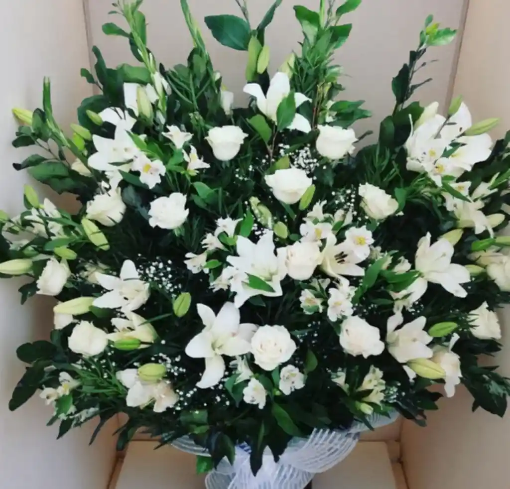 HERMOSO ARREGLO FLORAL GRANDE MIX FLORES BLANCAS PARA DESPEDIR A LAS PERSONAS QUE ESTIMAMOS