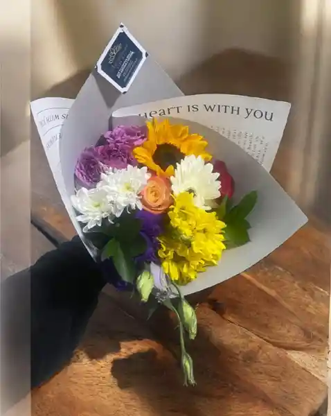 Ramo Mixto de 10 Varas de Flores Primaveras. Un ramo alegre y vibrante, pensado para impresionar a primera vista. Contiene una cuidada selección de las flores más lindas de la temporada, elegidas a diario en nuestro taller para garantizar frescura y belleza. Toma en cuenta que la foto es referencial y utilizamos flores de temporada. las flores del Dia
