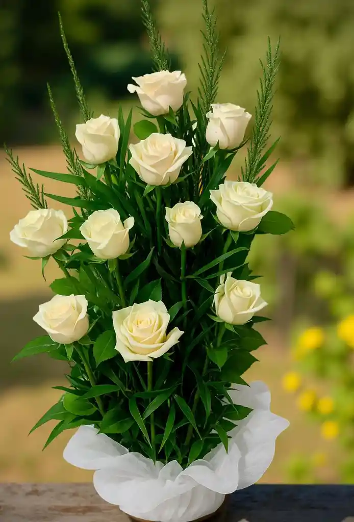 HERMOSO ARREGLO FUNEBRE 12 ROSAS BLANCAS PARA DESPEDIR A LAS PERSONAS QUE ESTIMAMOS