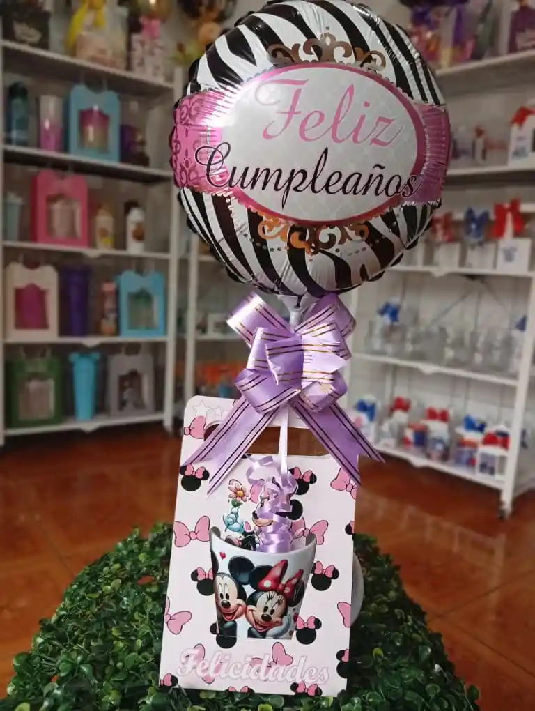 Tazón minnie y michey globo a eleccion/ feliz cumpleaños, feliz dia Estuche decorado