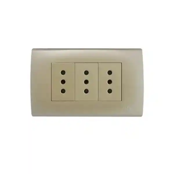 Enchufe Triple 10A Dorado A83-P06. La Línea Eléctrica Art Dna Destaca Por su Alta Calidad Dentro Del Mercado. Cuentan Con Bastidor Metálico en el Mercado, Asegurando Firmeza y Mayor Durabilidad en Sus Instalaciones. Los Productos Art Dna Cuentan Con Certificación