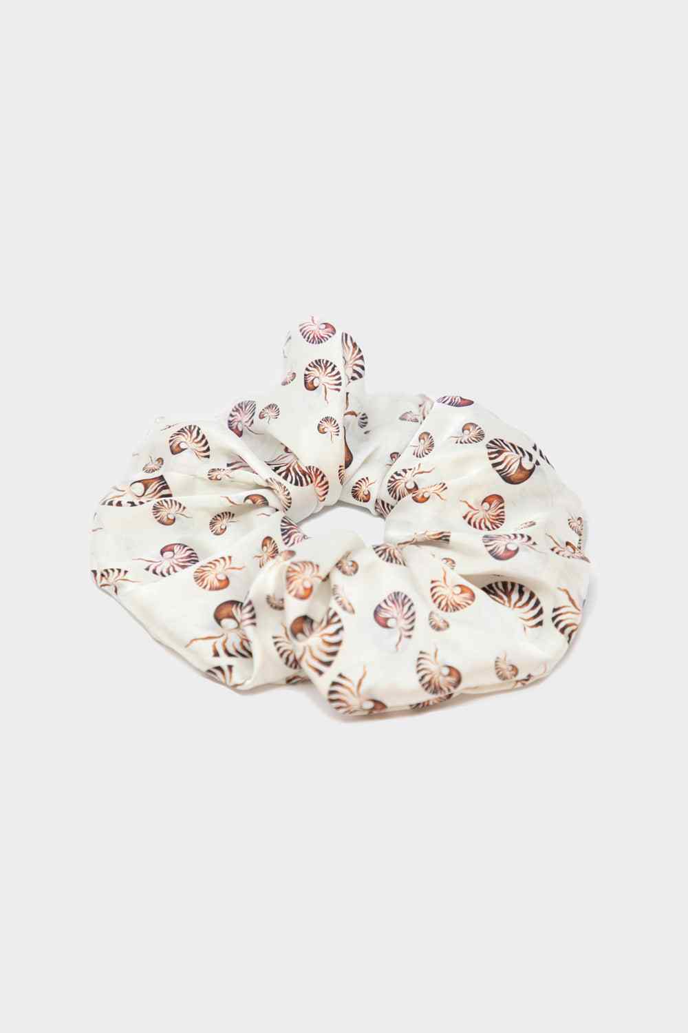 Nuestros Scrunchies son confeccionados a mano en base a una tela suave y liviana, perfecta para amarrar el pelo con delicadeza. Este producto es único y de edición limitada ya que es parte de #ArtManza, una colección desarrollada con diseños de diferentes artistas nacionales.El diseño de María Jesús está inspirado en el mar y recoge las texturas, formas y colores de un misterioso molusco marino: el Nautilo. "Este molusco es una especie escasa que se ha visto muy rara vez por las costas del Pacífico sur y su aparición causó gran asombro...Una especie misteriosa y elegante, con un diseño único en su concha".Tela: 50% Poliéster reciclado, 50% Poliéster.Dimensiones: 18 cm de diámetro aprox.Cuidados: Lavar a mano con agua fría / No aplicar exceso de fuerza al elástico