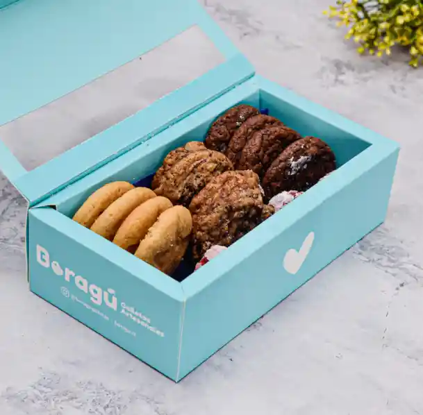 Deliciosa caja de 250 grs. que incluye una selección de nuestras mejores galletas artesanales, doble chocolate chip con trozos de nueces, red velvet craquelada de almendra, mantequilla de maní y la deliciosa galleta brownie. El packaging ha sido cuidadosamente diseñado y desarrollado para que destaque por su calidez y cariño y al igual que las galletas, tiene mucha dedicación.