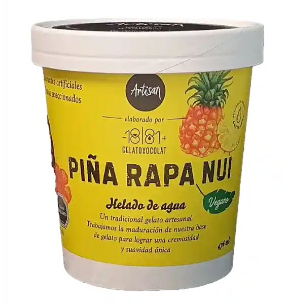 Un Delicioso Helado 100% Base Vegetal Elaborado Con Piña Natural de Isla de Pascua. Fresco Natural y Con un Preciso Dulzor. Sin Colorantes Artificiales Sabores Naturales Con Frutos Seleccionados.