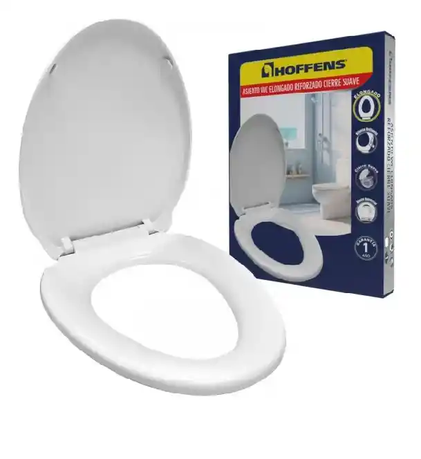 Asiento Wc Elongado Reforzado Cierre Suave Hoffens Blanco Tapa y Asiento de WC de forma ovalada y cierre suave. Este producto destaca por su diseño elegante y funcional, que combina estética y practicidad, adaptándose a cualquier estilo de baño contemporáneo. Fabricado con material reforzado de alta calidad, su peso total de aproximadamente 1.500 g garantiza durabilidad y resistencia, asegurando un uso prolongado. La bisagra de cierre suave y controlado proporciona una experiencia de uso cómoda y segura, evitando golpes y ruidos molestos. Con unas dimensiones de 52 cm de altura, 10 cm de largo y 40 cm de ancho, este asiento se presenta en un paquete con un peso total de 1710 g, lo que facilita su manejo. Además, su color blanco puro añade un toque de frescura y limpieza a su baño.