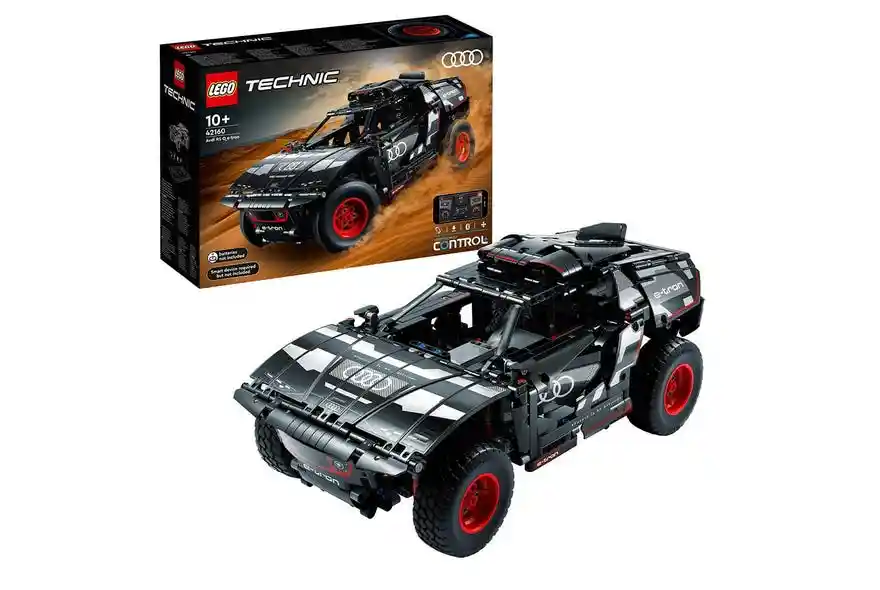 Los pequeños aficionados a los autos de rally podrán poner a prueba sus habilidades con el modelo LEGO® Technic Audi RS Q e-tron (42160). Mientras lo construyen, descubrirán cómo es el vehículo eléctrico diseñado por Audi para soportar las duras condiciones de las etapas por el desierto del Rally Dakar. Este modelo incorpora numerosos detalles realistas, como la suspensión individual en las 4 ruedas del auto. También cuenta con nuevas ruedas Technic creadas expresamente para reflejar el diseño de las originales de Audi. El auto en acción Los niños podrán usar la app CONTROL+ tanto para conducir su auto hacia delante y hacia atrás como para maniobrar. Una fantástica forma de construir Los sets LEGO Technic introducen a los jóvenes constructores LEGO en el mundo de la ingeniería de un modo accesible y, con la app LEGO Builder, dispondrán de herramientas digitales que les asisten en el proceso de construcción. • Construye un auto de rally “eléctrico”: Los aficionados a los autos de rally a partir de 10 años ya pueden explorar nuevas habilidades en el campo de la ingeniería con la versión LEGO® Technic del Audi RS Q e-tron participante en el Dakar 2022. • Funciones teledirigidas: A los peques les encantará poner a prueba su auto de rally teledirigido usando la app CONTROL+ para conducirlo hacia delante y hacia atrás y maniobrar. • Fieles detalles: El set incorpora numerosas características del auto de rally Audi RS Q e-tron de verdad, como las nuevas ruedas Technic creadas expresamente para este modelo. • Suspensión en las 4 ruedas: Igual que en el vehículo real, esta versión en modelo cuenta con suspensión independiente en las 4 ruedas. • Un regalo para niños y niñas a partir de 10 años: El modelo en kit LEGO® Technic Audi RS Q e-tron (42160) es una idea de regalo sensacional para amantes de los autos y fans de Audi. • Dimensiones: Este set de construcción LEGO® Technic mide aproximadamente 15 cm de altura, 37 cm de longitud y 19 cm de anchura. • Una práctica ayuda: Descubre las intuitivas instrucciones disponibles en la app LEGO® Builder, donde constructores y constructoras podrán acercar y girar modelos en 3D, controlar su avance y guardar sets a medida que desarrollan nuevas habilidades. • Iniciación a la ingeniería: Los sets de modelos para construir LEGO® Technic reproducen con realismo movimientos y mecanismos que introducen a los jóvenes constructores LEGO en el universo de la ingeniería. • Alta calidad: Los componentes LEGO® Technic cumplen rigurosas normas del sector, por lo que ofrecen siempre las mismas cualidades, son compatibles entre sí y se conectan con fiabilidad una y otra vez. • La seguridad es lo primero: Los componentes LEGO® Technic se dejan caer, se calientan, se aplastan, se retuercen y se analizan para verificar que satisfacen estrictos estándares mundiales de seguridad.