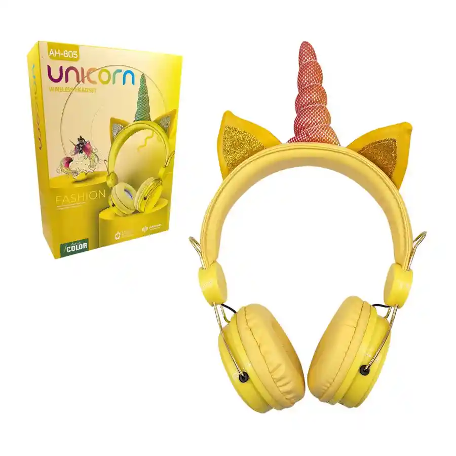 Auriculares de diseño unicornio super lindos y prácticos para los mas pequeños de la casa, de alta calidad con micrófono, música, estéreo, para ordenador, teléfono móvil, tablet, otros Color: Rosa y Dorado ESPECIFICACIONES: Tipo: Manos libres, dinámico Unidad de controlador: 40mm de diámetro, tipo domo Capacidad de manejo de energia: 50Mv – Tipo de Material: ABS – Diseño: Unicornio – Micrófono: HD Integrado – Tipo de Conexión: Inalámbrica – Tipo de Batería: Recargable – Versión de Bluetooth: 5.0 – Potencia: 4 dBm, clase 2 – Alcance: 10M – Respuesta de frecuencia: 12Hz-22kHz – Distorsión: 0.10% – Tamaño del altavoz: 40mm – Temperatura: -4 ~ + 131 ° F (-20 ~ + 55 ° C) – Sensibilidad: 108db / 0.1% Ber Medidas del empaque: 24 cm x 17.5 cm x 7 xm