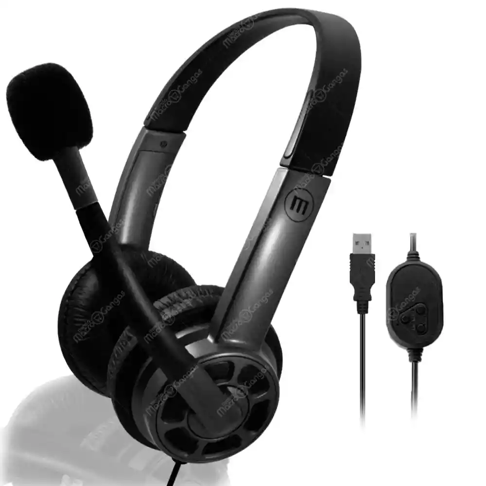 Audífonos Maxell para computador con micrófono y conexión USB de tipo cintillo acolchados y plug and play de fácil instalación. Compatible con computadores y notebooks gracias a la versatilidad de su conector y funcionamiento garantizado en sistemas operativos de Windows. Ideal para reuniones de teletrabajo y clases online.