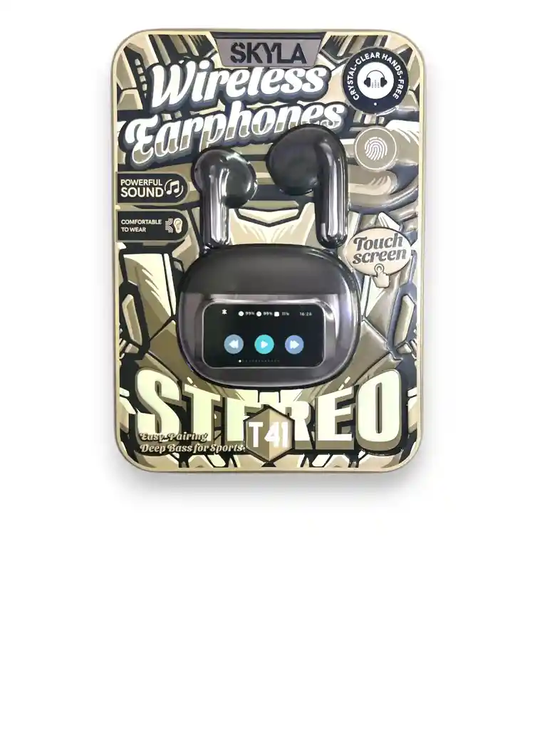 inalámbricos con pantalla táctil en el estuche de carga, sonido potente y diseño cómodo. Incorporan control táctil, emparejamiento rápido y bajos profundos, ideales para uso diario y actividades deportivas.