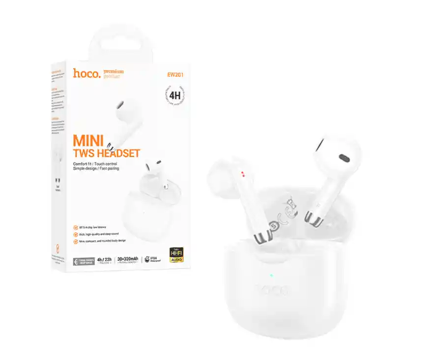 Audífonos Inalámbricos Hoco EW201 – Sonido Premium en un Diseño Minimalista Disfruta de una experiencia auditiva sin interrupciones con los Hoco EW201, audífonos Bluetooth 5.4 que combinan calidad de sonido, comodidad y tecnología avanzada. Su diseño in-ear sin gomitas es perfecto para quienes buscan un ajuste ligero y seguro sin comprometer la calidad del audio. Con una autonomía de 4 horas y un estuche de carga de 320 mAh, tendrás batería suficiente para disfrutar de tu música, podcasts o llamadas sin interrupciones. Además, su control táctil inteligente te permite cambiar canciones, responder llamadas o activar tu asistente de voz con un simple toque. Razones para elegir los Hoco EW201: ✔ Bluetooth 5.4 para una conexión más rápida y estable. ✔ Diseño compacto y ergonómico, ligero y sin gomitas. ✔ 4 horas de reproducción continua y estuche con carga extra. ✔ Control táctil intuitivo para gestionar música, llamadas y asistentes de voz. ✔ Emparejamiento automático al sacarlos del estuche. Ideales para el día a día, los Hoco EW201 te ofrecen libertad total con un diseño elegante y funcional. ¡Lleva tu música a otro nivel con la mejor tecnología inalámbrica! 🎶✨