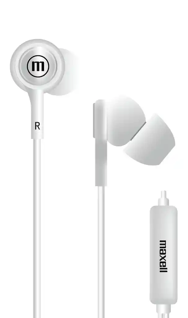 Audífonos Maxell IN-TIPS Con Micrófono In Ear Blanco Audífono estéreo básicos de tapón de silicona. Diseño ergonómico adaptable. Entrada de audio 3.5mm. Micrófono con botón contestador de llamadas. Sonido claro.