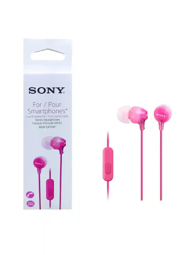 Sumérgete en un mundo de sonido envolvente con los audífonos Sony MDR-EX15AP en color rosado. Estos auriculares originales ofrecen un audio de alta calidad con bajos potentes y agudos claros. Diseñados para adaptarse cómodamente a tus oídos, son ideales para escuchar música en movimiento o responder llamadas con su micrófono integrado. Disfruta de la comodidad y calidad de Sony con los MDR-EX15AP en rosado.