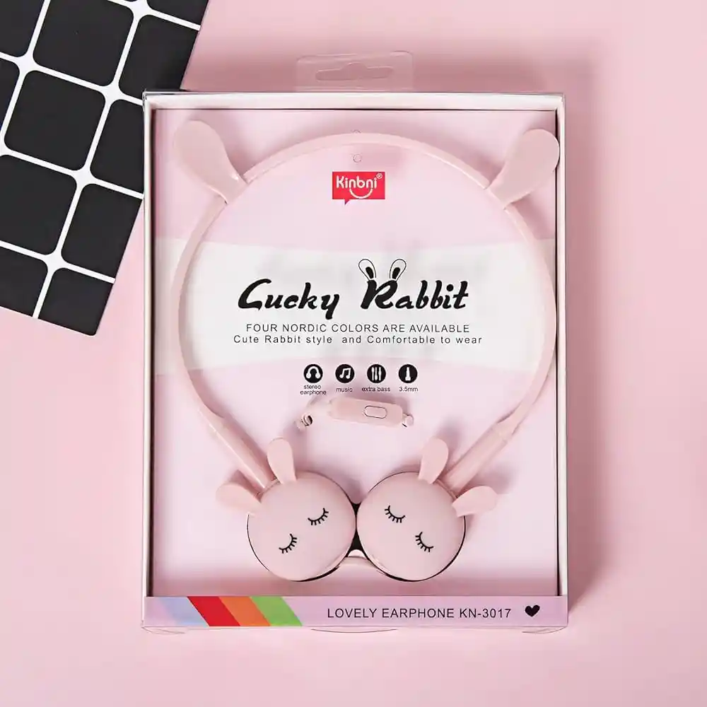 Auriculares TEMSON para niños - Auriculares con cable con forma de conejo, ideales para smartphones, videojuegos y regalos para niñas (KN-3017) (celeste)