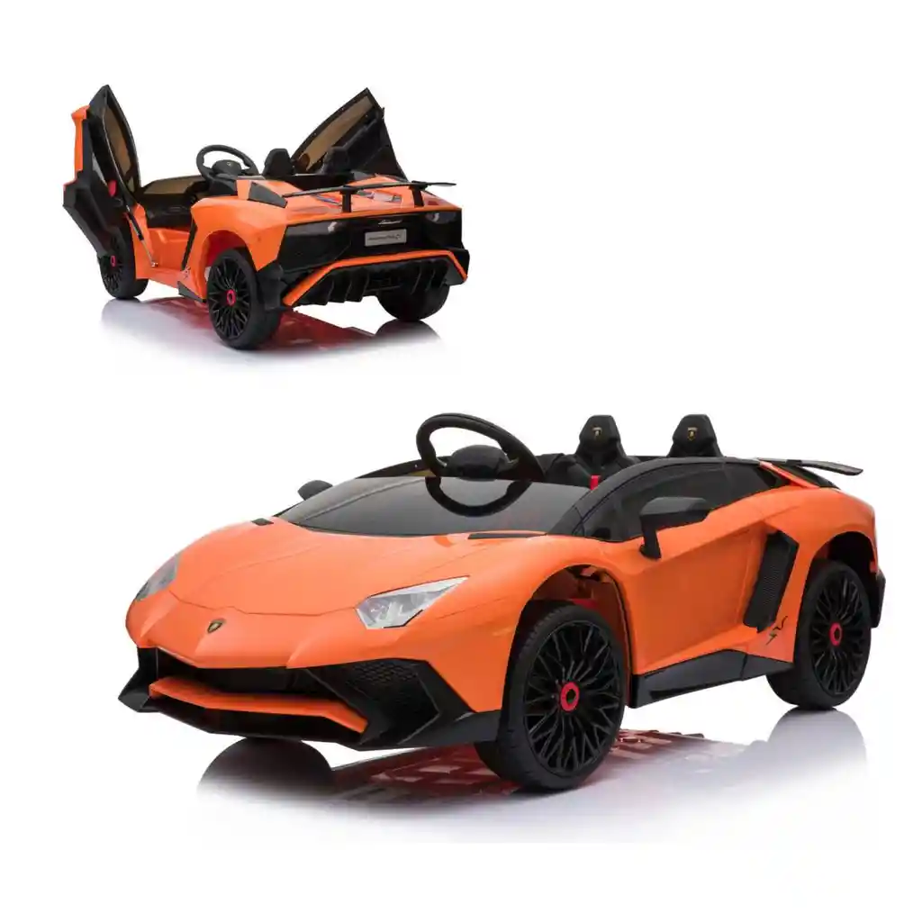 Los más pequeños de la casa podrán dar un paseo lleno de mucha diversión y estilo con este super fantástico Auto a Batería Lamborghini Aventador AV de 12V de 2 Motores con Control Remoto. Te vas a sorprender con los detalles realistas que ofrece este modelo como, luces que se encienden y apagan, MP3, bocina y sonidos de motor que tu hijo podrá activar fácilmente desde el tablero. Incluye un control remoto y cinturón de seguridad para los niños. Este auto es capaz de soportar un máximo de 30 Kg, tiene 2 motores alcanzando una velocidad de 5 km/hr, el tiempo de carga es de 12 horas y la batería tiene una duración de 30 a 40 minutos aprox. El producto armado alcanza unas medidas de 131 X 72.5 X 48 CM.