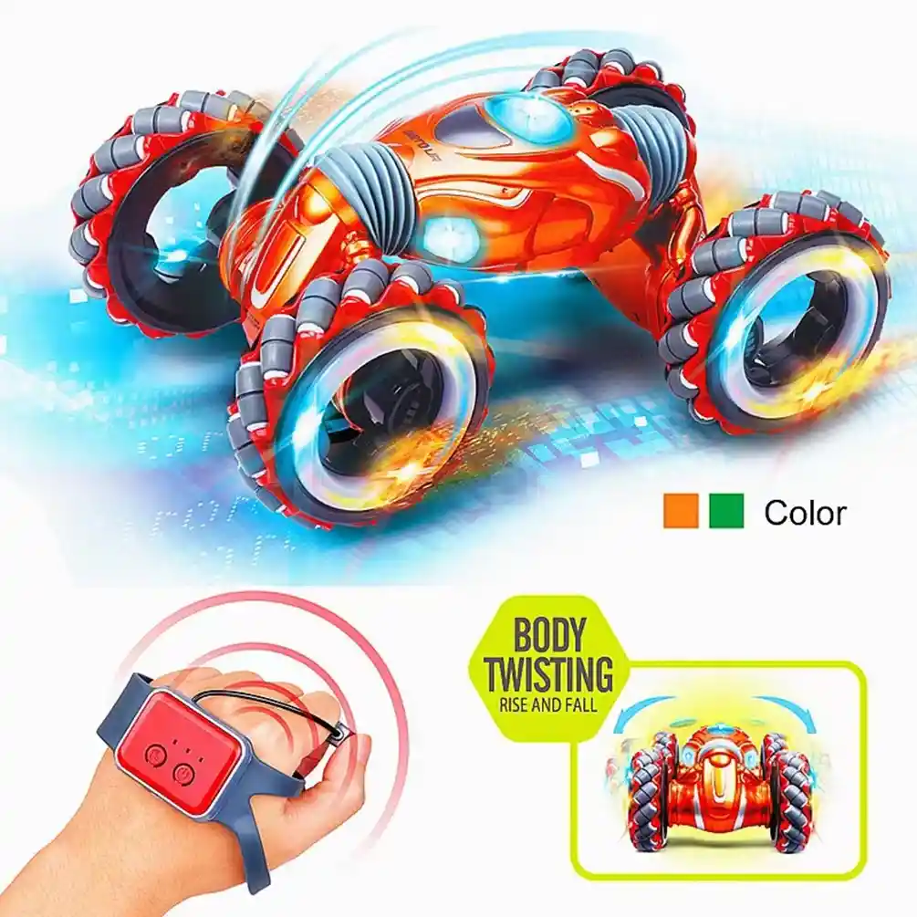 Auto a control remoto grande con sensor de movimiento de tu mano, para cualquier superficie, gira en 360° y con luces, el regalo perfecto para cualquier niño. De tamaño muy grande, 35cm largo x 21cm ancho x 12cm alto (escala 1:10). • Fácil de usar y divertido: el auto a control remoto sensible a los movimientos de tu mano se maneja de 2 formas diferentes: 1. Control inteligente sensible a los movimientos: Con sensor de gravedad y movimiento, con el control remoto podrás controlar un auto de manera muy fácil solo con agitar la palma de la mano, así el auto hará los movimientos que tu le asignes con el movimiento de tu mano. Muy útiles para mejorar la coordinación ojo-mano y la creatividad del niño. 2. Con el control remoto inalámbrico, también podrás manejar y hacer las acrobacias con tu auto. • Mucha entretención: sistema de control remoto de 2.4 GHz con capacidad anti-atascos que permite que varios jugadores corren al mismo tiempo en la misma pista. Los neumáticos de última tecnología permiten que el auto a control remoto todoterreno conduzca en todo terreno, playa de arena, nieve, barro, césped, carretera de piedra, etc. • Además de las funciones básicas de un auto a control remoto, podrás manejarlo hacia adelante/atrás, gira a la izquierda/derecha, podrás hacer acrobacias, gira a 360°, desviación horizontal/inclinada. Además, el auto se contrae y extiende. Incluye música y luces, para hacerlo más divertido aún. • El mejor regalo para niños y perfecto regalo de cumpleaños, así los niños estarán más dispuestos a mantenerse alejados de productos electrónicos y acercarse a la naturaleza y al aire libre.