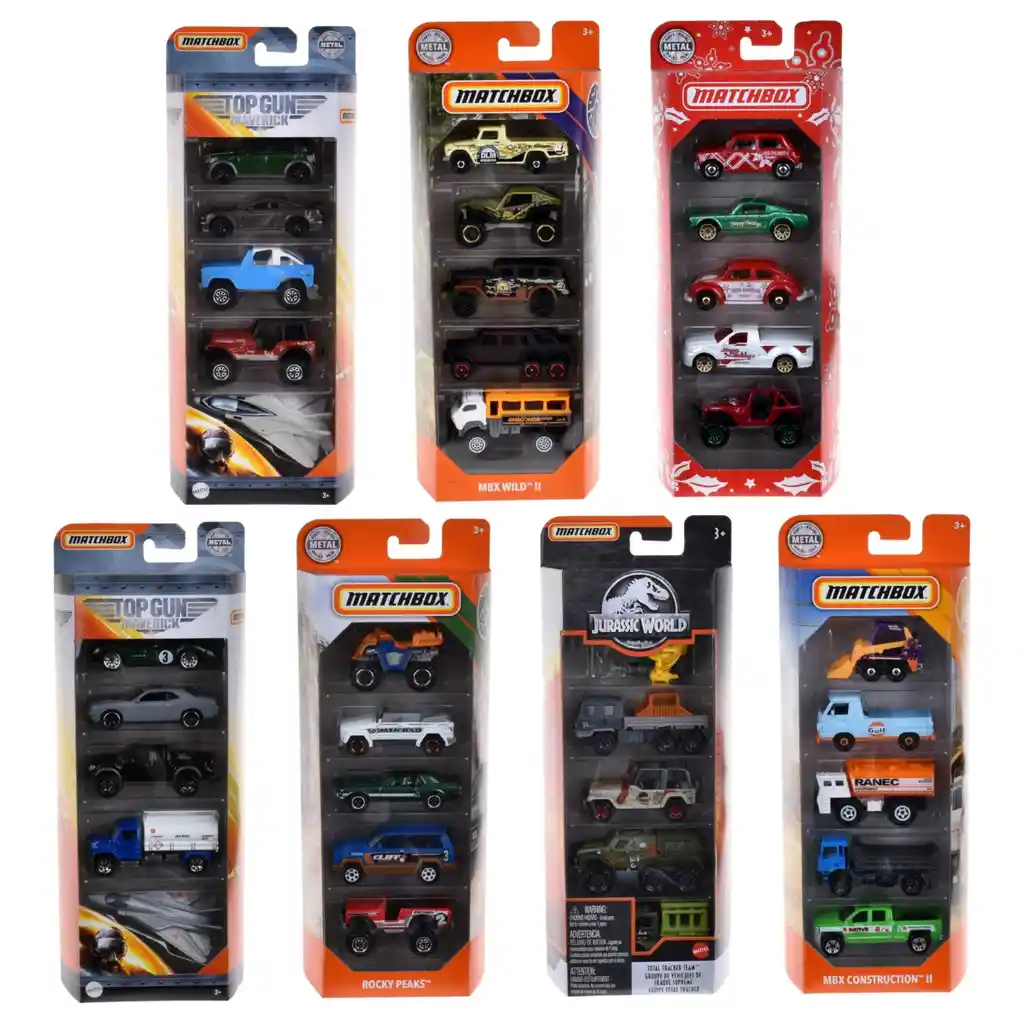 ¡El clásico Matchbox 5 pack es un regalo perfecto para aquellos coleccionistas amantes de los autos! Este fantástico paquete cuenta con un conjunto de cinco vehículos detallados con múltiples temas para representar, ideal para que los niños imaginen y jueguen. Desde el parachoques hasta el guardabarros, cada automóvil está diseñado con detalles altamente realistas. Los niños disfrutaran de crear su propia historia de ciudad rescate, construcción o aventura. Los colores y las decoraciones pueden variar. Son modelos surtidos, no a elección.