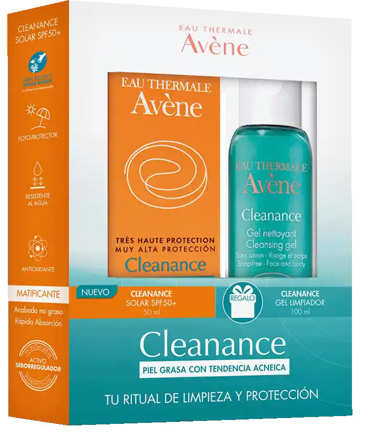 Avene Pack Solar Cleanance Solar Piel Grasa Fps50+ 50Ml + Gel Limpiador 100Ml