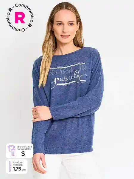 Aziz Camiseta Polera Manga Larga Brillante 1 Color Índigo L S25
