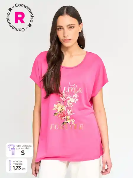 Aziz Polera Manga Corta Estampada Color Fucsia L S25