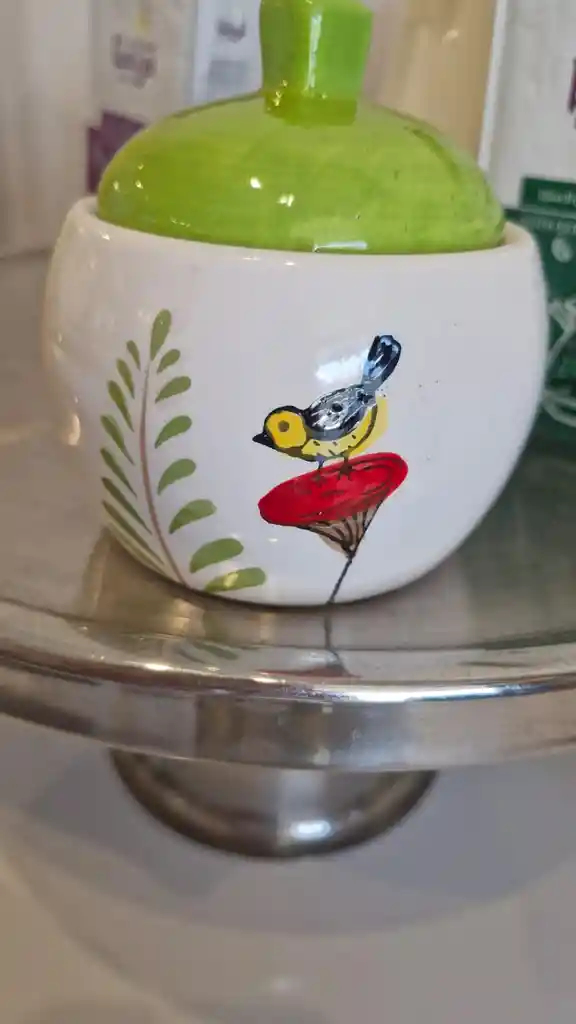 Azucarero , o mermeladero cerámica diseño 7 cm de alto más tapa.