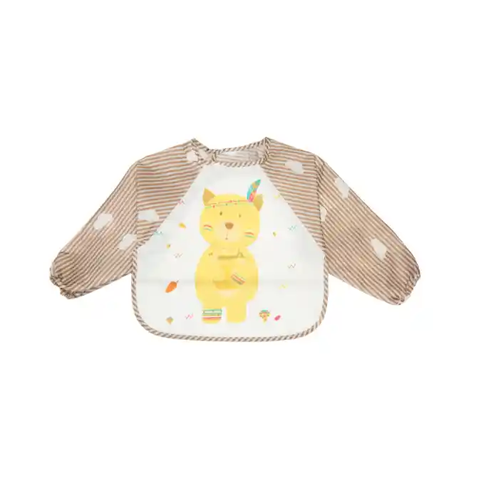 Babero Con Mangas Plásticas 0-6m Precaución: El babero debe ajustarse cómodamente al cuello del bebé. No debe quedar demasiado apretado Por favor use bajo supervisión de un adulto Mantenga alejado del bebé cuando no lo este usando para prevenir asfixia Instrucciones: Lentamente abra el aro del babero con sus dedos Deslice por la cabeza del bebé hacia el cuello Ajuste el babero de manera que repose sobre el pecho del bebé Diseñado completamente de plástico, lo que lo hace 100% impermeable. Con mangas plásticas que ayudan a que los niños puedan comer sin miedo a manchar su ropa. Fácil de usar y limpiar Ideal para comenzar la etapa de alimentación. Material no toxico Suave y confortable Diseño moderno para bebé