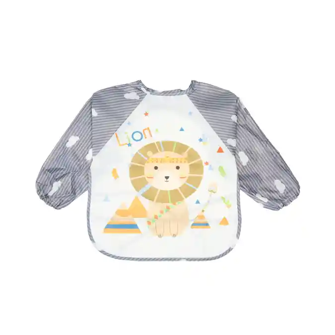Babero Con Mangas Plásticas 6-12m Precaución: El babero debe ajustarse cómodamente al cuello del bebé. No debe quedar demasiado apretado Por favor use bajo supervisión de un adulto Mantenga alejado del bebé cuando no lo este usando para prevenir asfixia Instrucciones: Lentamente abra el aro del babero con sus dedos Deslice por la cabeza del bebé hacia el cuello Ajuste el babero de manera que repose sobre el pecho del bebé Diseñado completamente de plástico, lo que lo hace 100% impermeable. Con mangas plásticas que ayudan a que los niños puedan comer sin miedo a manchar su ropa. Fácil de usar y limpiar Ideal para comenzar la etapa de alimentación. Material no toxico Suave y confortable Diseño moderno para bebé