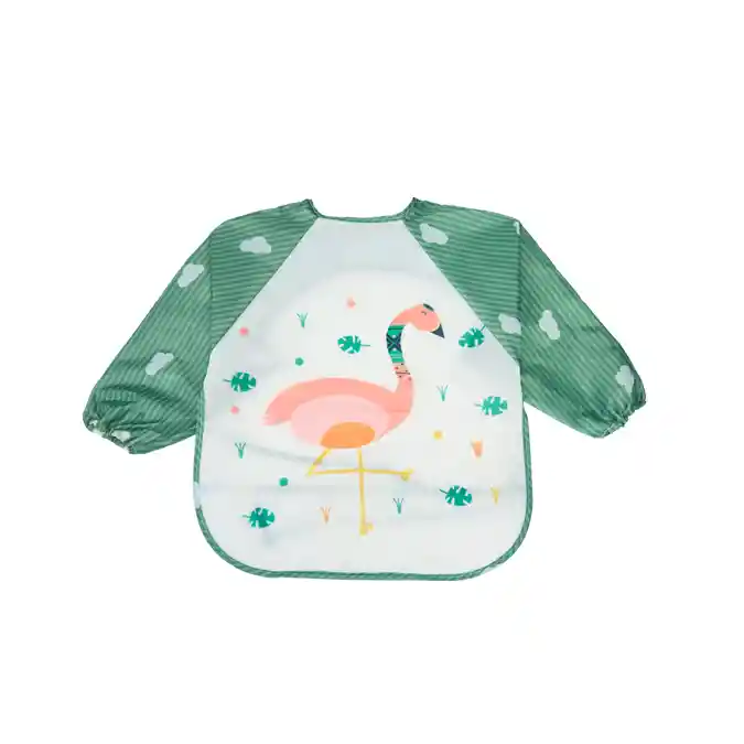 Babero Con Mangas Plásticas 6-12m Precaución: El babero debe ajustarse cómodamente al cuello del bebé. No debe quedar demasiado apretado Por favor use bajo supervisión de un adulto Mantenga alejado del bebé cuando no lo este usando para prevenir asfixia Instrucciones: Lentamente abra el aro del babero con sus dedos Deslice por la cabeza del bebé hacia el cuello Ajuste el babero de manera que repose sobre el pecho del bebé Diseñado completamente de plástico, lo que lo hace 100% impermeable. Con mangas plásticas que ayudan a que los niños puedan comer sin miedo a manchar su ropa. Fácil de usar y limpiar Ideal para comenzar la etapa de alimentación. Material no toxico Suave y confortable Diseño moderno para bebé