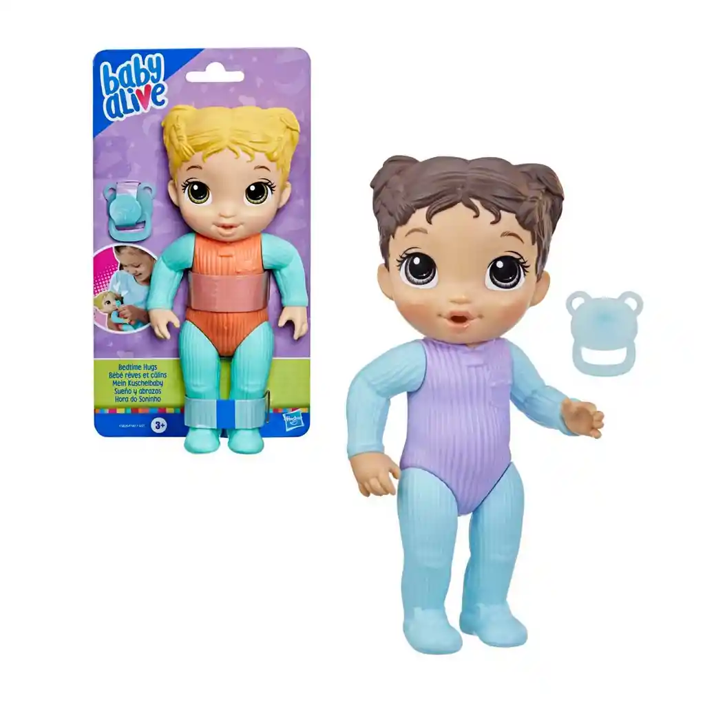Las pequeñas mamás podrán recrear su propia rutina de sueño con estas adorables muñecas Baby Alive Sueños y Abrazos, las cuales están listas para ir a la cama. Estas muñecas de 24 cm están diseñadas con detalles auténticos y altamente realistas como un precioso pijama, el cual se encuentra moldeado a su cuerpo, contando con una textura que le hace parecer como una pijama de verdad. Gracias a sus puntos 5 de articulación ofrece una mayor posibilidad de poses y juego, además incluyen un chupete para consolarlas. Cada una se vende por separado. Este juguete está pensado para incentivar el desarrollo de tus pequeños, ayudándoles a desarrollar sus habilidades cognitivas, sensoriales, su expresión social y emocional promoviendo en ellos la imaginación, la creatividad y el juego de rol.