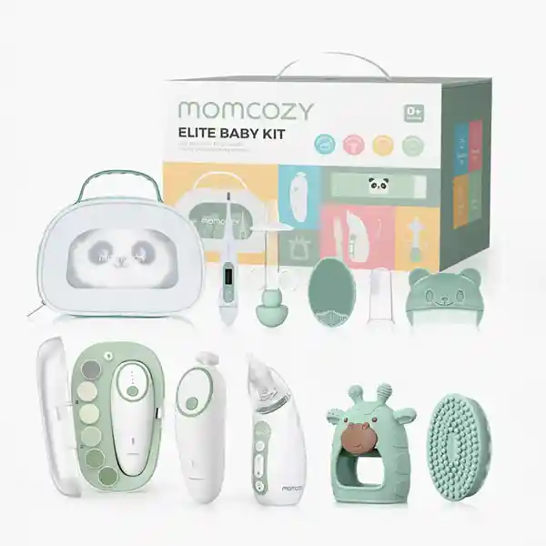 Imagina abrir un solo paquete y encontrar todo lo necesario para cuidar de tu bebé desde el primer día. El Kit Todo en Uno para bebés Elite no es solo un conjunto de herramientas: es tu compañero para estos primeros momentos de crianza. Cada accesorio está pensado para darte tranquilidad, desde un cortauñas seguro, hasta un aspirador nasal que ayuda a que respire mejor sin molestias. Este kit transforma rutinas diarias en momentos de cariño, dándote seguridad, comodidad y apoyo para sentirte más preparado como mamá o papá primerizo. Momcozy All-in-1 Elite Baby Kit – Cuidado completo para tu recién nacido Es un set todo-en-uno diseñado para facilitar el cuidado diario de tu recién nacido. Este kit reúne los accesorios esenciales para grooming (aseo), salud y limpieza en un solo paquete práctico y fácil de usar, ideal tanto en casa como para llevar contigo Incluye accesorios clave: Cortaúñas eléctrico suave para mantener las uñas del bebé seguras y bien cuidadas. Aspirador nasal eléctrico con niveles ajustables para limpiar las vías respiratorias del bebé con delicadeza. Envoltura térmica para la barriga y termómetro para apoyo en el bienestar y monitoreo de temperatura. Accesorios: Chupete de medicina, cepillo de baño, cepillo de costra láctea, peine, mordedor y cepillo dental para dedos para cubrir todas las necesidades de aseo y confort. Con su diseño compacto y completo, este kit es una solución práctica para padres primerizos y un regalo perfecto para baby showers o listas de nacimiento.