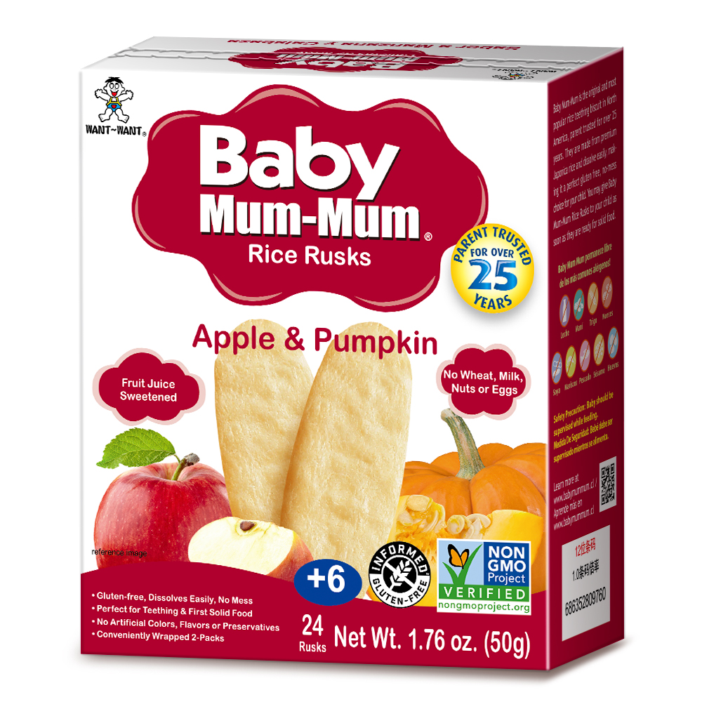 Snack saludable para bebés, endulzado con jugo de fruta natural, sin preservantes, colorantes, ni azúcar añadida y libre de sellos. Se disuelven fácilmente en la boca, ideales para la etapa de dentición y como primer alimento sólido. Libre de Gluten y de GMO. Libre de los 10 alérgenos más comunes (Maíz, Soya, Crustáceos, Maní, Pescado, Trigo, Sésamo, Frutos Secos, Huevo y Leche). Recomendado a partir de los 6 meses de edad. Cada caja trae 12 sachets, cada uno con 2 galletas en su interior.
