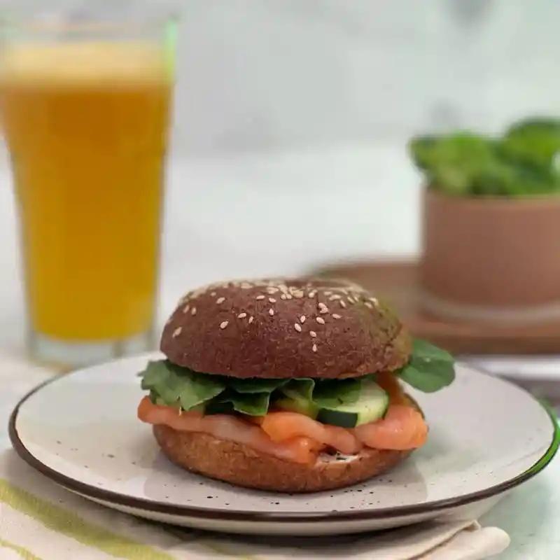 Disfruta de una opción saludable y sabrosa que combina lo mejor de la cocina keto. Este bagel artesanal, elaborado con harina de almendras y harina de coco, está relleno de salmón ahumado, queso crema, rúcula y un toque refrescante de pepino. Sin conservantes ni preservantes, ideal para una experiencia deliciosa y nutritiva. Atrévete a probar esta deliciosa combinación y eleva tus comidas a un nuevo nivel de sabor.