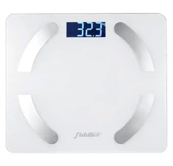 Balanza inteligente Fiddler FD FHBDI con App Blanca Compatible con Google Fit y Apple Health Se pueden monitorear hasta 8 personas a la vez. El material es vidrio templado Te permite hacer seguimiento a tu avance Capacidad: 3 - 180KGS División: 1D=100G/0.2LB Unidad: KG/LB. Indicador de batería baja Indicación de sobrecarga Pantalla LCD Superficie de vidrio templado Temperatura ideal: -10-60 grados C Ambiente húmedo: 90%RH Fuente de poder: 2 pilas AAA ( incluidas). Transmisión inalámbrica Bluetooth Distancia de transmisión a la App de hasta 12 metros. Peso del producto: 1.17kg. aprox. Las medidas del producto son: 30x26x2,5