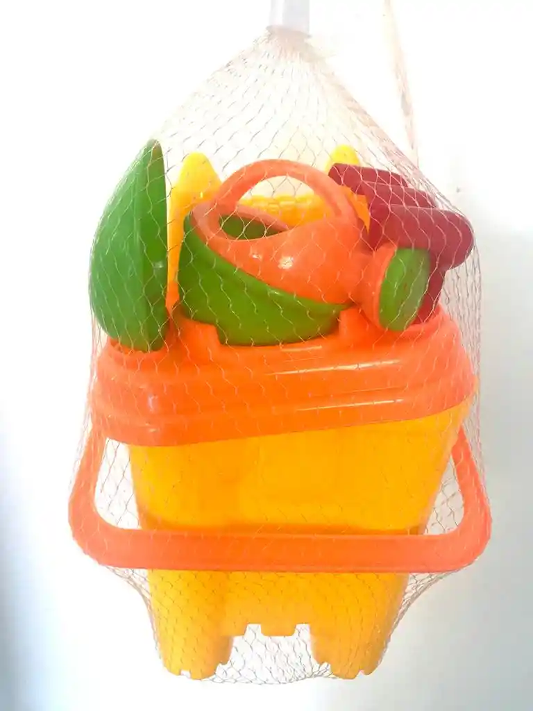 BALDE GRANDE CON 5 ACCESORIOS +3 JUGUETE PLAYA IDEAL PARA PISCINA Y PLAYA.