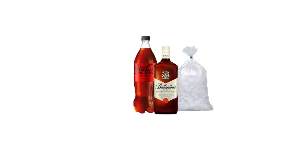 BALLANTINES FINES 40º 750 ML + COCA COLA SIN AZUCAR 1,5LT + HIELO 1KG