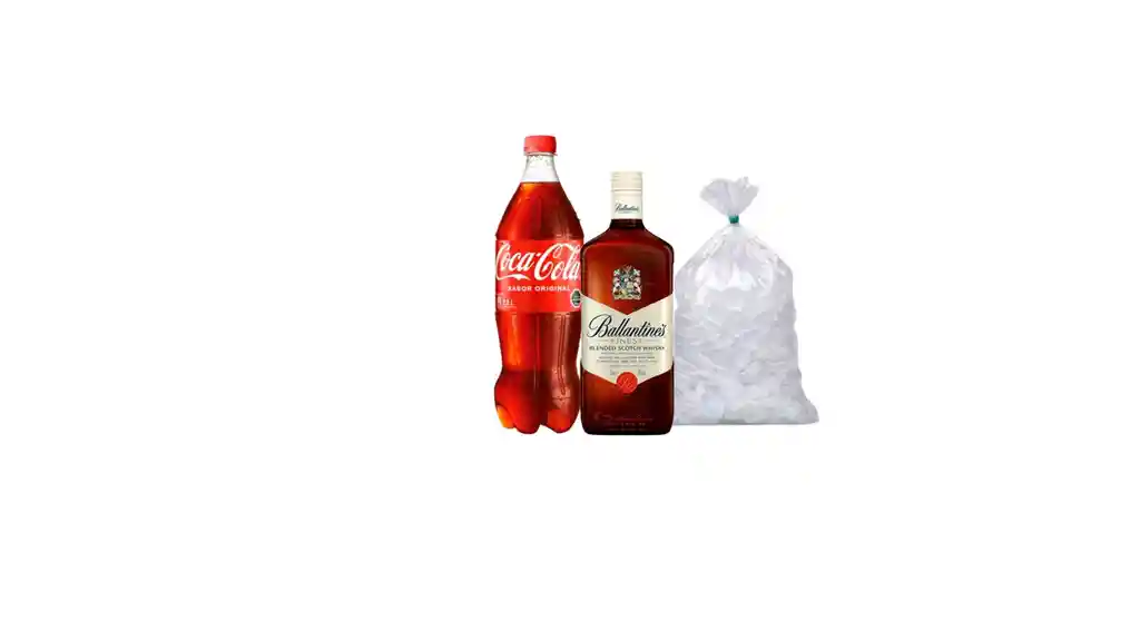 BALLANTINES FINES 40º 750 ML + COCA COLA ORIGINAL 1,5LT + HIELO 1KG