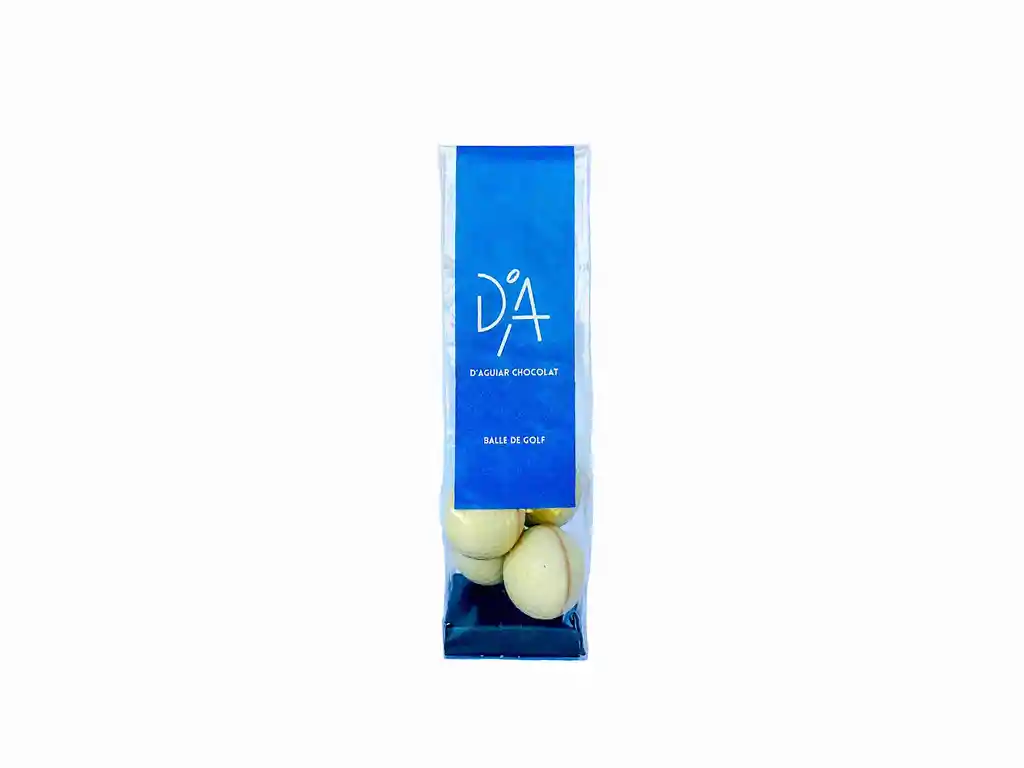Pelotas de Golf de chocolate blanco, rellenas de praliné casero de avellanas. ¡Imposible resistirse a su sabor!