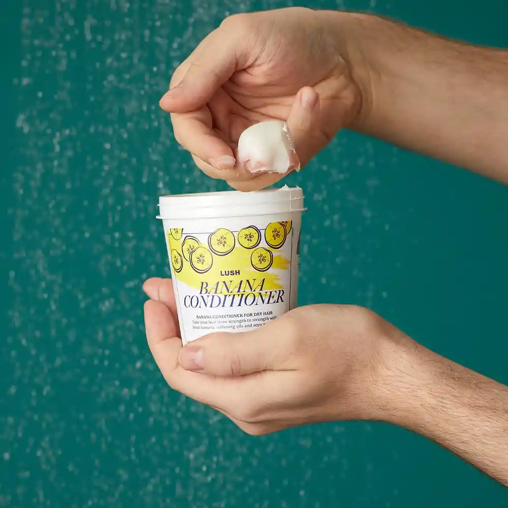 Hidrata y fortalece tu cabello seco con Banana, un acondicionador nutritivo con plátano, agar y yogur de soya para un brillo saludable.