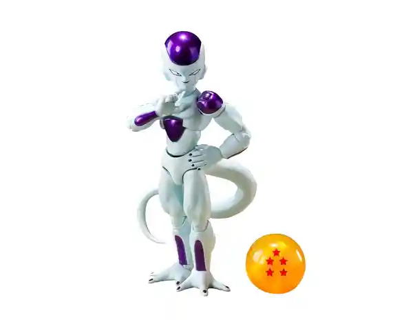 Freeza Conocido También Como Freezer es un Alienígena Mutante Brutal Dictador y Líder Del Imperio Galáctico Del Universo 7 Con el Apoyo Estratégico en Secreto de su Padre Cold. En Las Películas También Lidera Este Imperio su Hermano Mayor Coola. Además de Ser Considerado Como la Contraparte de Frost Del Universo 6. El Tirano Emperador es el Responsable de la Muerte de Bardock y Gine Los Padres de Son Goku Del Rey Vegeta Así Como de la Mayor Parte de su Especie Los Saiyans Del Planeta Vegeta Desembocando en Una Limpieza Étnica Conocida Popularmente Como el Genocidio Saiyano. Incluye Cuerpo 2X Cabezas Opcionales 2X Mano Izquierda 4X Mano Derecha Brazos Cruzados Opcional 1X Pie Opcional Aura Angelical Cola Bola de Dragón de Namek (5 Estrellas). Medida 15 cm Articulada.