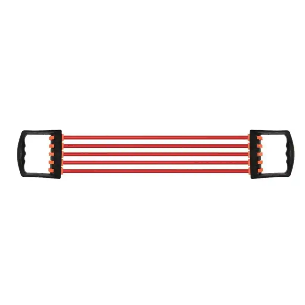 Set de 1 extensor con 5 tubos con agarre firme para tracciones y empujes. Todos los tubos tienen la misma resistencia. Todos los tubos tienen la misma resistencia. Para aumentar o disminuir resistencia debe sacar o poner los tubos removibles. Entrena desde casa, con los mejores equipos, y la calidad que te entregara estabilidad y respaldo en cada ejercicio. Medidas:14x7x35 cm. Largo Tubo: 42 cm. Incluye: 1 set con bandas. Largo total incluyendo manijas: 64 cm. Color: Multicolor. Material: Goma. Producto 100% recomendado. Garantía Legal de 6 meses.