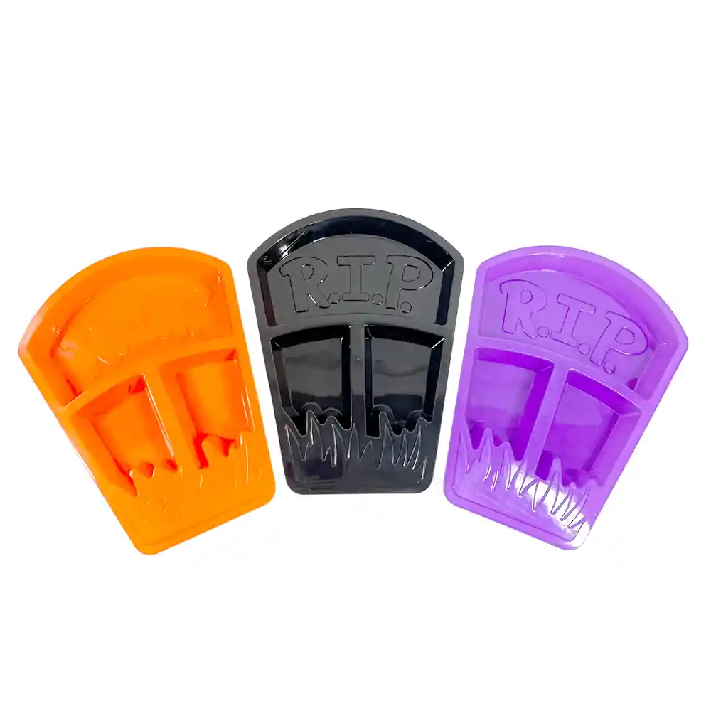 Lleva el espÃritu de Halloween a tu mesa con esta bandeja con forma de ataúd, ideal para organizar y servir distintos tipos de dulces, snacks y golosinas en tu fiesta. Diseño único y temáticoSu forma de ataúd y los colores surtidos (naranjo, morado o negro) la convierten en el complemento perfecto para una mesa divertida y espeluznante. Práctica y funcionalCon 3 divisiones, podrás mantener separados distintos tipos de golosinas o picoteos, dándole orden y estilo a tu celebración. Beneficios Diseño de ataúd con 3 compartimientos Colores surtidos: naranjo, morado o negro Tamaño amplio para más capacidad Resistente y reutilizable Detalles técnicos Cantidad: 1 unidad Material: Plástico resistente Colores surtidos: Naranjo, morado o negro Medida: 32 cm de largo ¡Dale un toque espeluznante y práctico a tu fiesta con esta bandeja ataúd de 3 divisiones! PÃdela hoy y recÃbela en la puerta de tu casa. 👻🚰ï¸