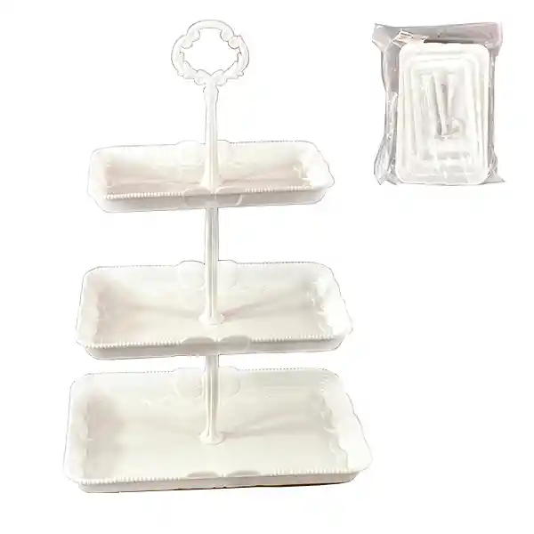 Bandeja plástica de 3 pisos. Mide 27x17x39CM